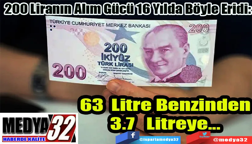 Ekonomideki gidişat sonucu Türk Lirasının alım gücü de eridi. 2009'da tedavüle giren 200 TL’lik banknot, o yıl bu parayla tam 63.4 litre benzin alıyordu. Şimdi ise 200 lira ile sadece 3.7 litre benzin alınabiliyor.