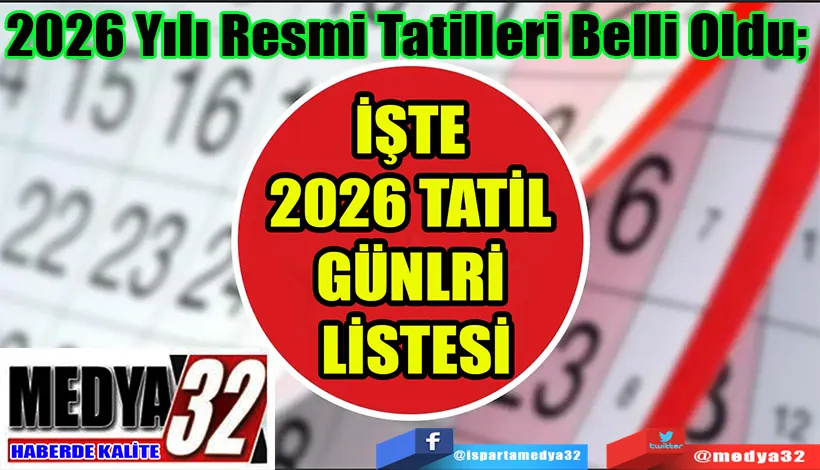 Yeni yılın yaklaşmasıyla birlikte en çok merak edilen konulardan biri olan 2026 yılı resmi tatil takvimi belli oldu. Önümüzdeki yıl Ramazan ve Kurban Bayramlarının hangi günlere denk geldiği, ayrıca 15 Temmuz ve 29 Ekim gibi özel günlerin hafta içi mi yoksa hafta sonu mu olacağı gibi tüm detaylar netleşti. 2026'da toplam 15,5 günlük resmi dinlenme süresi bizleri bekliyor.