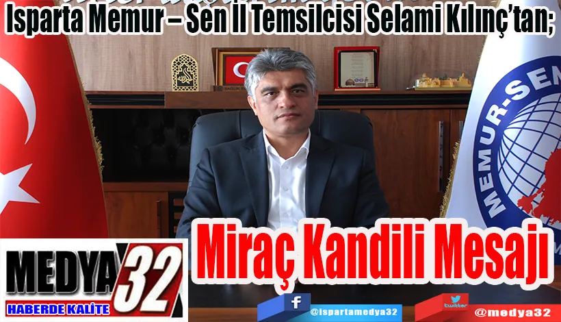 Memur – Sen Isparta Temsilcisi ve Eğitim Bir – Sen Isparta Şube Başkanı Selami Kılınç, bu akşam idrak edeceğimiz Mübarek Miraç Kandili münasebetiyle bir kutlama mesajı yayınladı.