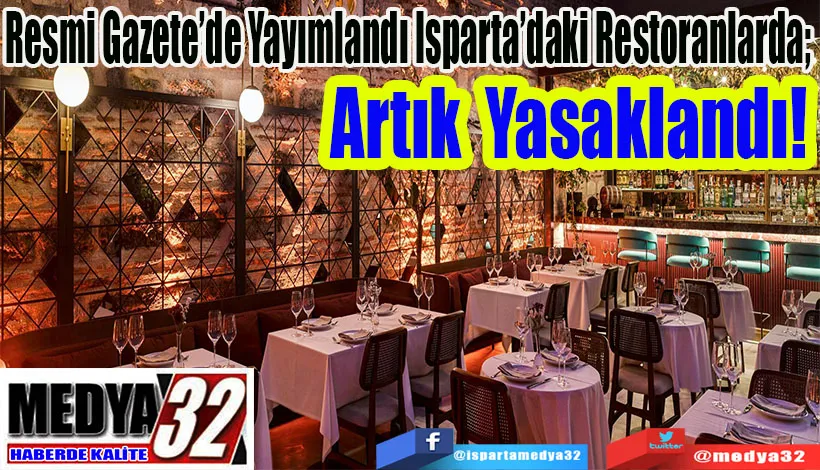 Resmi Gazete’de yayımlanan kararla Isparta’daki Restoran, Kafe Ve Lokantalarda masa ücreti, servis ücreti ve kuver ücreti almak yasaklandı. Yeni dönem resmen başladı. İşte Ayrıntılar…