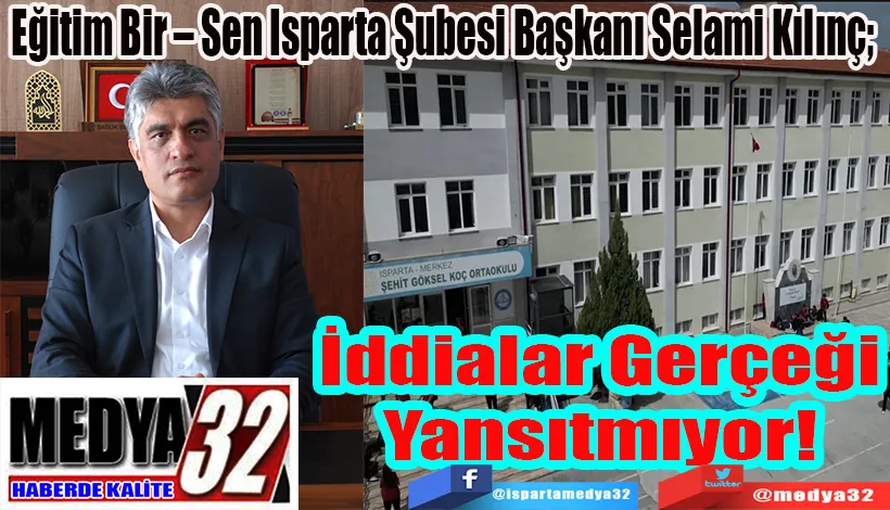 Eğitim Bir – Sen Isparta Şubesi Başkanı ve Memur – Sen İl Temsilcisi Selami Kılınç, Şehit Göksel Koç Ortaokulu ile ilgili kamuoyunda yer alan iddiaların gerçeği yansıtmadığını belirterek; “Konu, kasıtlı biçimde çarpıtılarak yanlış ve asılsız bir algı oluşturulmaya çalışılmaktadır” dedi.
