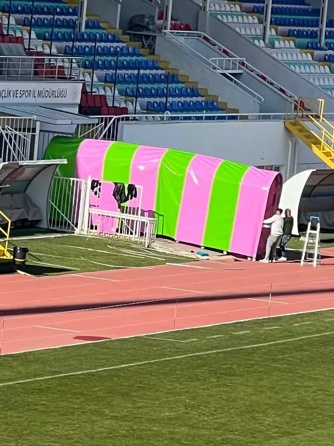 Bu eksikliklerden birisi de Stadyumda bulunan ve Futbol maçlarında takımların sahaya girip çıkmalarında kullanılan Körük idi. İlk yapılışında şehrin takımı Ispartaspor’un renkleri olan Yeşil – Pembe ile alakası olmayan renklerde yapılan Körük, stadyumun eksiklerinin giderilmesi çalışması kapsamında Müdür Murat Çağrı Kaya’nın talimatlarıyla yenileyerek Ispartaspor’un renkleri olan Yeşil – Pembe renginde yaptırılarak yerine monte edildi. Ve böylece körük de hem stadyuma hem şehrin takımına uygun hale getirildi. Gazeteciler ve Yeşil – Pembeli Taraftarlar, Isparta Gençlik ve Spor İl Müdürü Murat Çağrı’ya bu duyarlı hareketinden dolayı teşekkür ettiler.