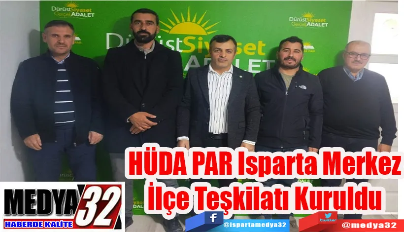 HÜDA PAR Isparta Merkez İlçe Teşkilatı kuruldu. Genel Merkez tarafından alınan karar doğrultusunda Merkez İlçe Başkanlığı görevine İslam Çakar atanırken, teşkilat yapılanması da tamamlandı.
