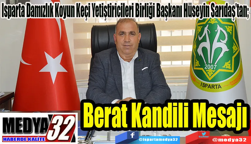 Isparta İli Damızlık Koyun Keçi Yetiştiricileri Birliği Başkanı Hüseyin Sarıdaş, bu akşam idrak edeceğimiz Berat Kandili münasebetiyle bir kutlama mesajı yayımladı.