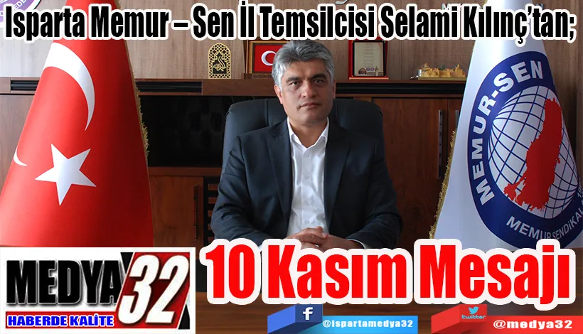 Memur – Sen Isparta İl Temsilcisi ve Eğitim Bir – Sen Isparta Şube Başkanı Selami Kılınç, Gazi Mustafa Kemal’i vefatının 87. Yıldönümünde bir anma mesajı yayınladı.
