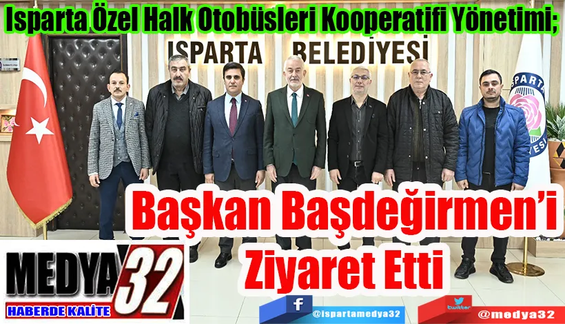 Isparta Özel Halk Otobüsleri Kooperatifi’nin geçtiğimiz haftalarda yapılan olağan genel kurulunda başkanlık görevine yeniden seçilen Faruk Daşdöner ve beraberindeki yönetim kurulu üyeleri, Isparta Belediye Başkanı Şükrü Başdeğirmen’i ziyaret etti.