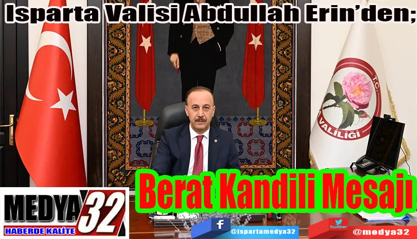Isparta Valisi Abdullah Erin, bu akşam idrak edeceğimiz Berat Kandili münasebetiyle bir kutlama mesajı yayımladı.