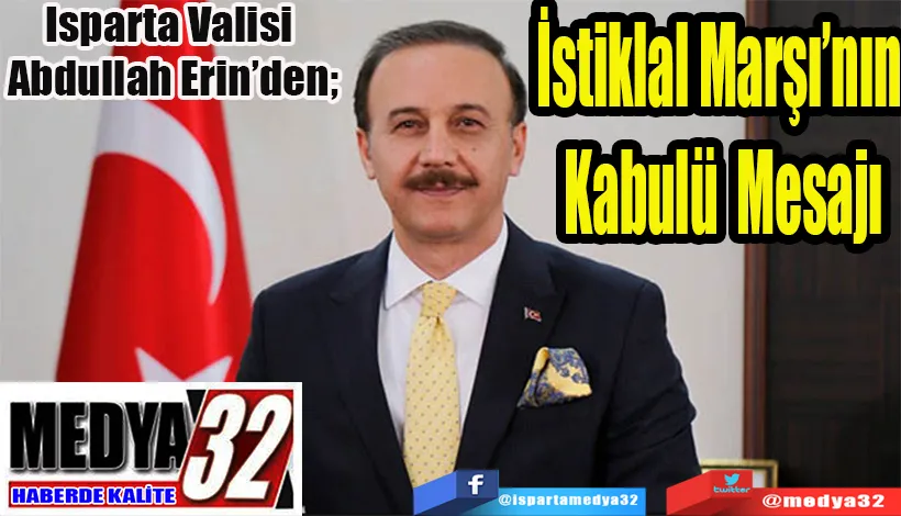 Isparta Valisi Abdullah Erin’den; İstiklal Marşı’nın Kabulü Mesajı