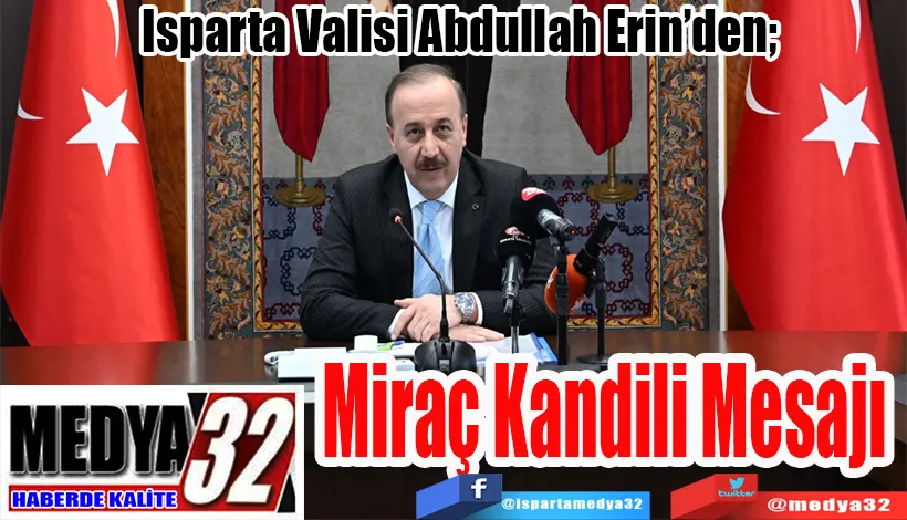 Isparta Valisi Abdullah Erin, Miraç Kandili dolayısıyla bir kutlama mesajı yayınladı.