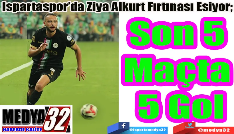 Ispartaspor’da Ziya Alkurt fırtınası esiyor. Yeşil – Pembeli Kulübün sezon başında Sebat Gençlikspor’dan transfer ettiği başarılı kanat oyuncusu son 5 maçta 5 gol birden atarak takımına büyük katkı sağladı.