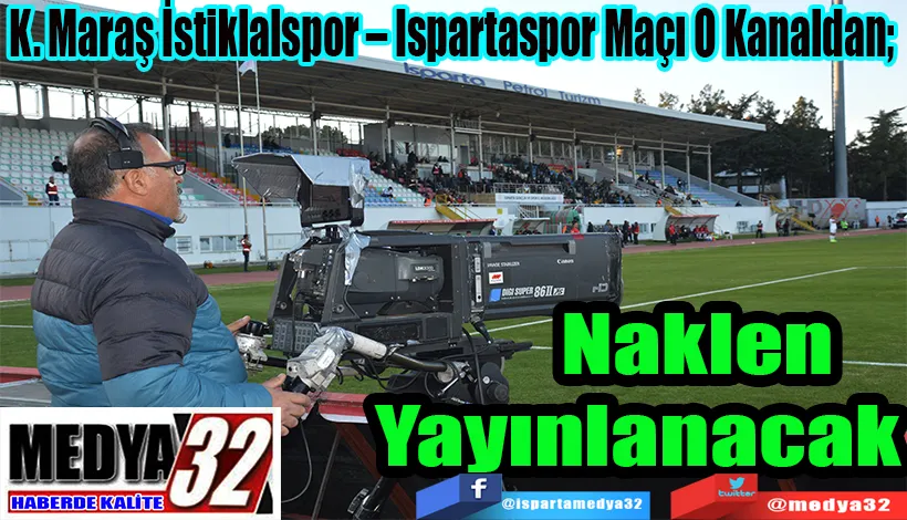 Ispartaspor’un Cumartesi günü depsalmanda karşılaşacağı K. Maraş İstiklalspor maçının hangi kanalda yayınlayacağı belli oldu. Buna göre, maç Cumartesi günü saat 13.00’ten itibaren Bi Kanal TV ekranlarından naklen yayınlanacak.