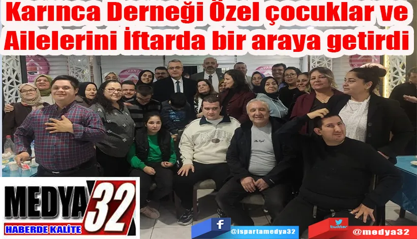 Isparta’da zihinsel engelli bireylerin eğitimi ve istihdamına katkı sağlamak amacıyla önemli projelere imza atan Karınca Zihinsel Engelliler Eğitim ve İstihdam Derneği, içinde bulunduğumuz Mübarek Ramazan Ayı dolayısıyla iftar yemeği düzenledi.