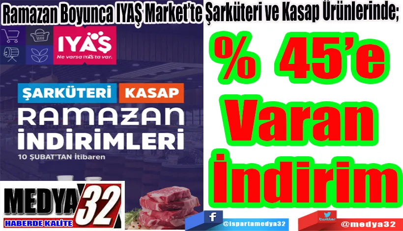 Kasap ve şarküteri reyonlarında geçerli olan %45’e varan indirimler, Ramazan ayı boyunca tüm IYAŞ Market mağazalarında uygulanacak.