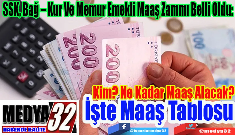 SSK ve Bağ-Kur emeklilerinin zamlı maaş tablosu şu şekilde oldu;