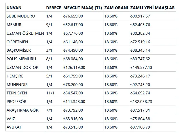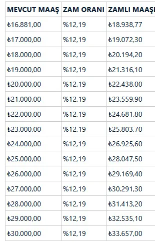 Memurların maaş zam tablosu da ortaya çıktı. İşte memurların alacağı maaşlar: