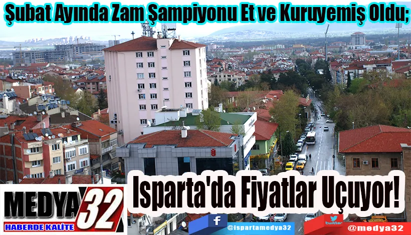 Isparta’da gıda fiyatları Şubat’ta %2,49 arttı, yıllık artış %44,06 oldu. Et ve kuruyemiş zam şampiyonu oldu.