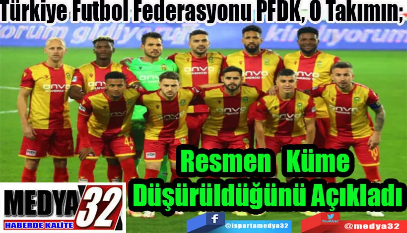 Türkiye Futbol Federasyonu (TFF), Profesyonel Futbol Disiplin Kurulu (PFDK), Ispartaspor’un grubunda yer alan ve iki maç üst üstü müsabakaya çıkmayan Yeni Malatyaspor’un KÜME DÜŞÜRÜLMESİNE karar verdi.