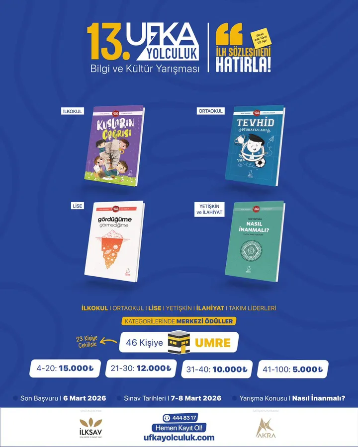 Ufka Yolculuk 3. Bilgi ve Kültür Yarışması kayıtları başladı. Yarışmada dereceye girenlere Umre ödülü ve çeşitli ödüller verilecek.