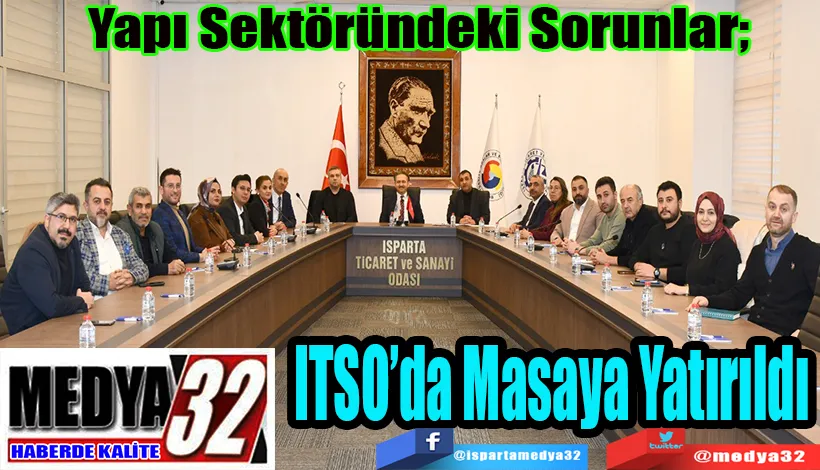 ITSO’da düzenlenen toplantıya; Isparta Mimarlar Odası Başkanı Caner Ataseven, İnşaat Mühendisleri Odası Isparta Temsilcisi Erdem Demiralay, Isparta Müteahhitler Birliği Başkanı Ali Yüce, ITSO Yönetim Kurulu Üyesi Fatih Topaloğlu ile belediye ve sektör temsilcileri katıldı.