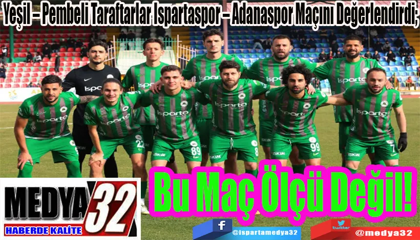 Ispartasporlu Taraftarlar, önceki gün Ispartaspor’un kendi saha ve seyircisi önünde oynadığı ve sahadan 7 – 0 galibiyetle ayrıldığı Adanaspor maçını değerlendirerek; “Tabiki karşımızdaki rakip çok zayıftı. Bundan sonraki maçlarda bu maç kesinlikle ölçü olamaz” dediler.