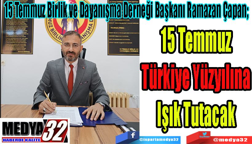 15 Temmuz Birlik ve Dayanışma Derneği Başkanı Ramazan Çapan, 15 Temmuz Milli Birlik Günü münasebetiyle bir mesaj yayınladı. Başkan Çapan mesajında; “Bir devrin başlangıcı, bir devin uyanışı ve bir milletin kenetlenmesi ile yazılan destanın adı 15 Temmuz. Birlik ve beraberliğin, milli şuur ve milli iradenin çelikten, zırhtan, kurşundan daha sağlam olduğunun göstergesi gazilerimiz ve şehitlerimizdir.
