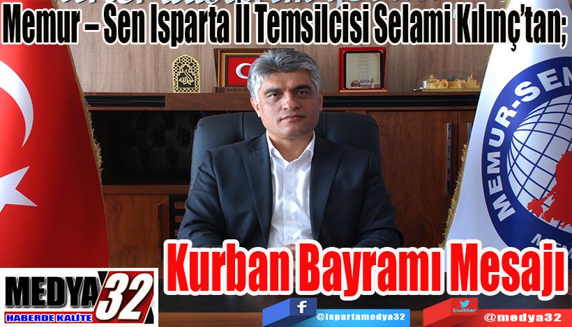 Memur – Sen Isparta İl Temsilcisi ve Eğitim Bir – Sen Isparta Şube Başkanı Selami Kılınç, Kurban Bayramı dolayısıyla bayram kutlama mesajı yayımladı.