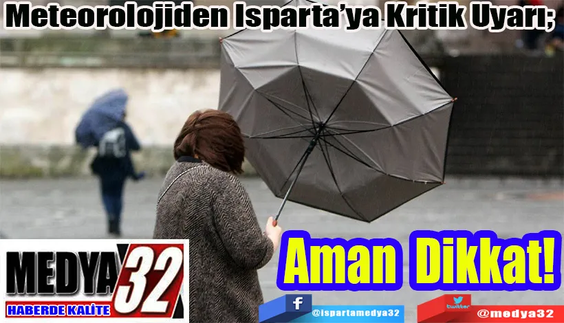 Meteoroloji 4. Bölge Müdürlüğü, Isparta ve Burdur çevrelerinde kuvvetli rüzgar ve fırtına beklendiğini duyurarak, vatandaşları tedbirli olmaları konusunda uyardı.
