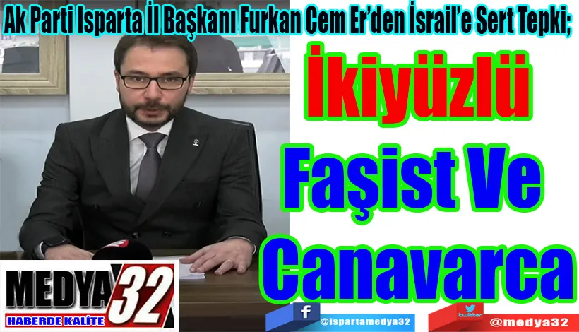 Ak Parti Isparta İl Başkanı Furkan Cem Er, işgal ve soykırım politikası uygulayan İsrail Devleti’ne karşı kınama mesajı yayınladı.