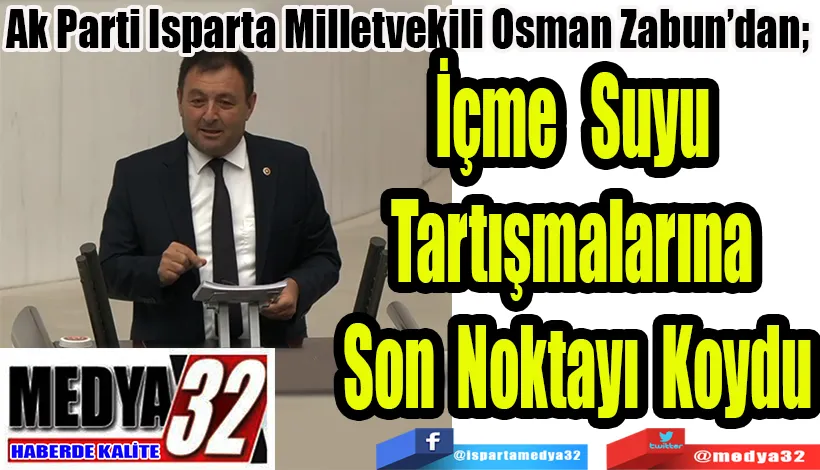 Isparta’da son günlerde kamuoyunda tartışma konusu olan içme suyu kalitesiyle ilgili önemli bir açıklama da AK Parti Isparta Milletvekili Osman Zabun’dan geldi. Milletvekili Zabun, konunun uzun süredir gündemlerinde olduğunu belirterek, Belediye Başkanı Şükrü Başdeğirmen ile birlikte bakanlıklar ve ilgili genel müdürlükler nezdinde yoğun girişimlerde bulunduklarını söyledi.
