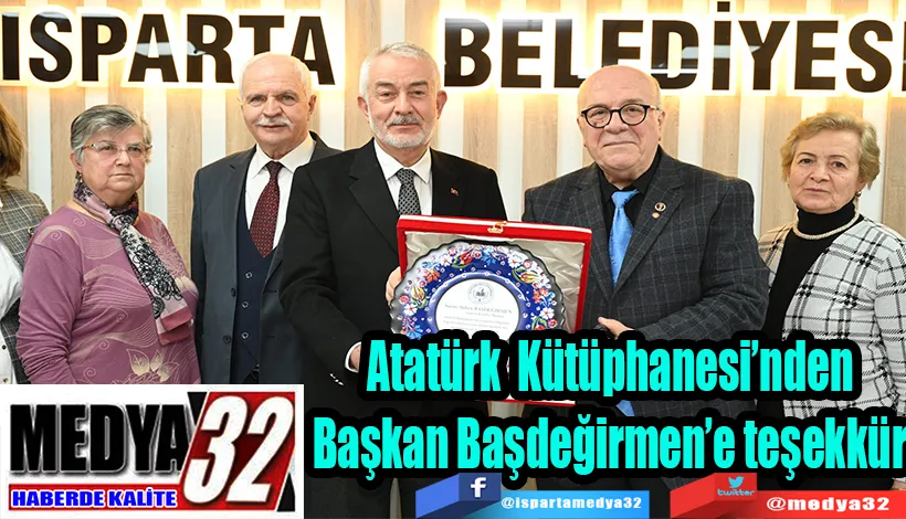 Isparta Belediyesi Kültür Merkezi’nin alt katında hizmet veren Atatürk Kütüphanesi’nin Kurucusu Emekli Noter Mustafa Kemal Pınar ve beraberindekiler, Isparta Belediye Başkanı Şükrü Başdeğirmen’i ziyaret etti.