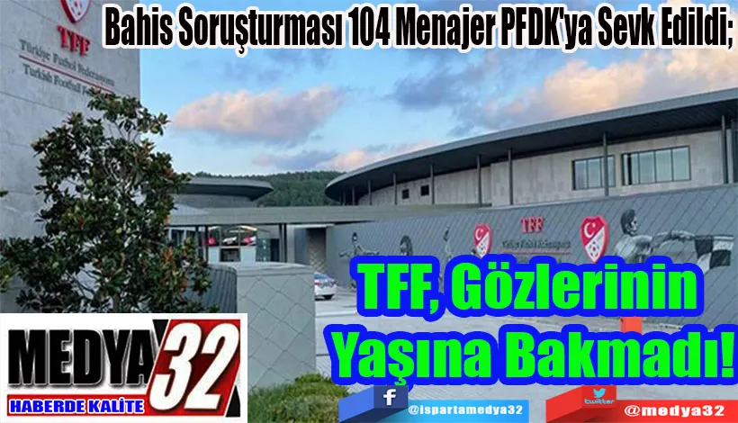 Türkiye Futbol Federasyonu (TFF) bahis soruşturması kapsamında 104 Futbol Menajerinin Profesyonel Futbol Disiplin Kurulu'na (PFDK) sevk edildiğini açıkladı.