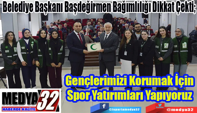 Belediye Başkanı Şükrü Başdeğirmen de toplantıda yaptığı konuşmada, Yeşilay Isparta Şubesi’nin çok önemli hizmetler yürüttüğünü belirterek şunları söyledi; “Bir insanın hayatında boşluk bırakırsanız o boşluğa bağımlılık girer. Çok doğru bir söz. Bundan sonra da kendilerine desteğimizi artıracağız. Spor yatırımları konusunda yapılacak her çalışma bağımlılıkla mücadeleye katkı demek. Gelir Gelmez Spor Müdürlüğünü kurduk. 22 semt sahasını yaptık. 3 kapalı spor salonu, yüzme havuzu, 2spor kompleksi, gençlik merkezleri, kütüphaneler hep siz Meclis üyelerinin kararlarıyla yapıldı. Böylece çocukların boş zamanlarını dolduracak alanlar oluşturduk. Çocuğun elinden bilgisayarı aldığınız da diyecekler ki biz ne yapacağız? Şimdi aileler spor yapacağın sahada orada diyebiliyor. Bugün yaptığımız kütüphaneler dolu. Sahada gençler gece eksi derece havada maç yapıyorlar. Amatör spor kulüplerini destekledik. Daha önceki dönemlerde maddi destek verilememiş ama biz her yıl en az iki sefer maddi ve manevi destek veriyoruz. Tüm bunların amacı çocuklarımızın bağımlılıktan uzak kalması” dedi.