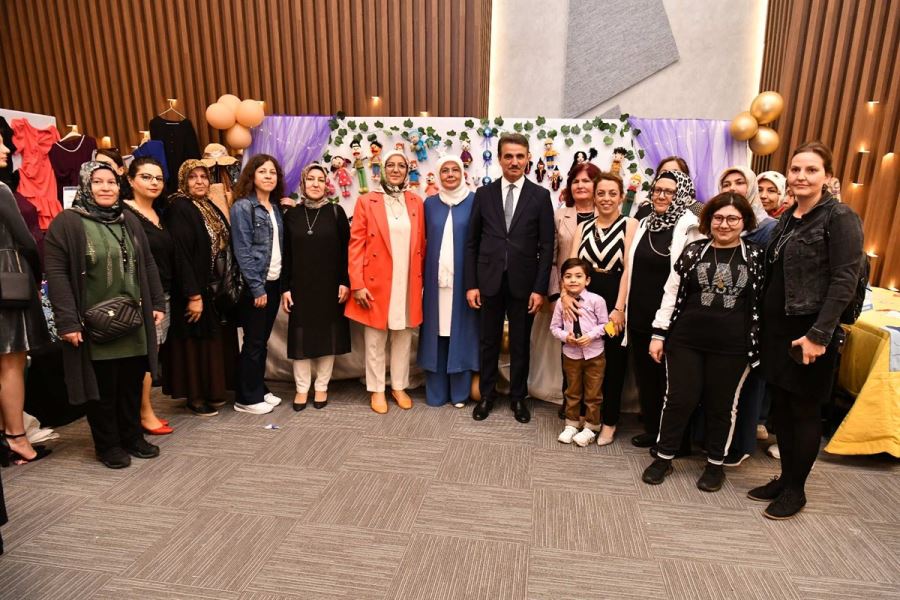 Açılışın ardından stantları tek tek gezerek kursiyer ve öğreticilerden eserler hakkında bilgi alan Vali Baruş ve eşi Nagihan Baruş sergide emeği geçen herkese teşekkür etti.