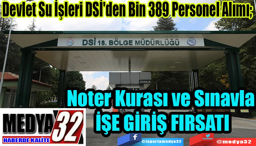 Devlet Su İşleri Genel Müdürlüğü (DSİ), taşra teşkilatında görev yapacak toplam 1.389 personel alımı gerçekleştireceğini duyurdu. Tarım ve Orman Bakanı İbrahim Yumaklı tarafından paylaşılan bilgiye göre, alımların büyük çoğunluğu noter kurası yoluyla, bir kısmı ise yazılı, sözlü ve uygulama sınavı ile yapılacak. Noter kurası dışında kalan 84 kadro ise Operatör pozisyonu için açıldı. Bu pozisyonlara başvuracak adaylar, yazılı, sözlü ve uygulama sınavına tabi tutulacak.