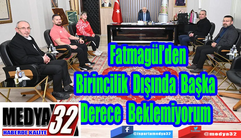 Daha önce dünya şampiyonluğu ve Türkiye şampiyonlukları da bulunan Fatmagül Çevik, antrenörü Ferit Şen ile birlikte Isparta Belediye Başkanı Şükrü Başdeğirmen’i ziyaret etti. Şen: “Hedefimiz Temmuz’daki şampiyona” Halter Antrenörü Ferit Şen, Tokat’ta düzenlenen Büyükler Ferdi Türkiye Halter Şampiyonası’na Isparta Belediyesi Spor Kulübü’nden 10 sporcu ile katıldıklarını söyledi.