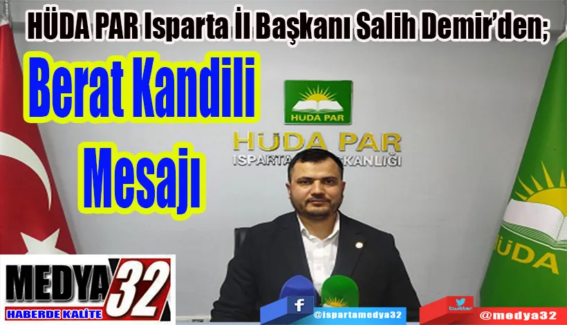 HÜDA PAR Isparta İl Başkanı Salih Demir, Berat Kandili dolayısıyla yayımladığı mesajda, bu mübarek gecenin manevi iklimine, toplumsal sorumluluklara ve Ramazan ayına hazırlığın önemine dikkat çekti.