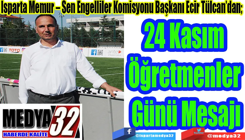Isparta Memur – Sen Engelliler Komisyonu Başkanı Ecir Tülcan, 24 Kasım Öğretmenler Günü münasebetiyle bir kutlama mesajı yayınladı.