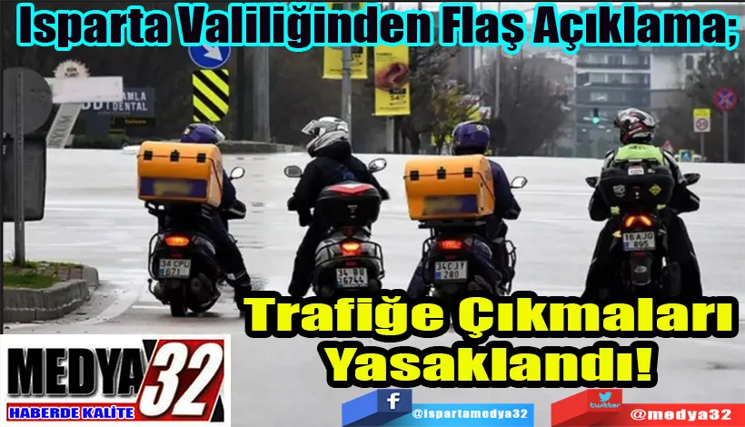Isparta Valiliğinden son iki günde uyarı üstüne uyarı geliyor. Valilik, Meteoroloji verilerine göre il genelinde yoğun fırtınanın etkili olacağını belirterek, motosiklet, elektrikli Scooter ve Motorlu kuryelerin geçici olarak trafiğe çıkmalarının yasaklandığını bildirdi.