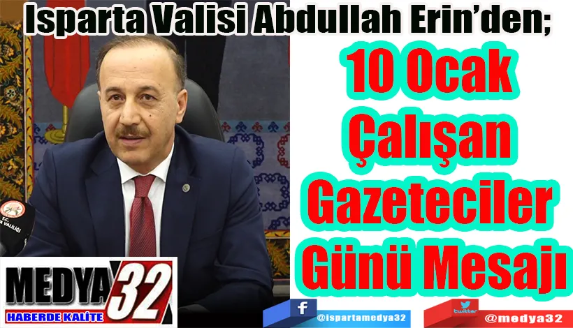 Isparta Valisi Abdullah Erin, 10 Ocak Çalışan Gazeteciler Günü dolayısıyla bir kutlama mesajı yayınladı.