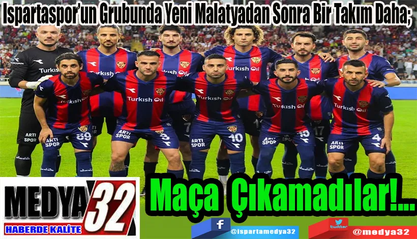 Ispartaspor’un grubunda yer alan bir takım daha adeta tarihe gömülüyor. Grupta maddi imkansızlıklardan dolayı maçlara çıkamayan ve ligden düşürülen Yeni Malatyaspor’un ardından dün de Mersin İdmanyurdu takımı maddi imkansızlıklar nedeniyle Menemenspor FK maçına çıkamadı. Bu maçla ilgili son kararı Federasyon verecek.