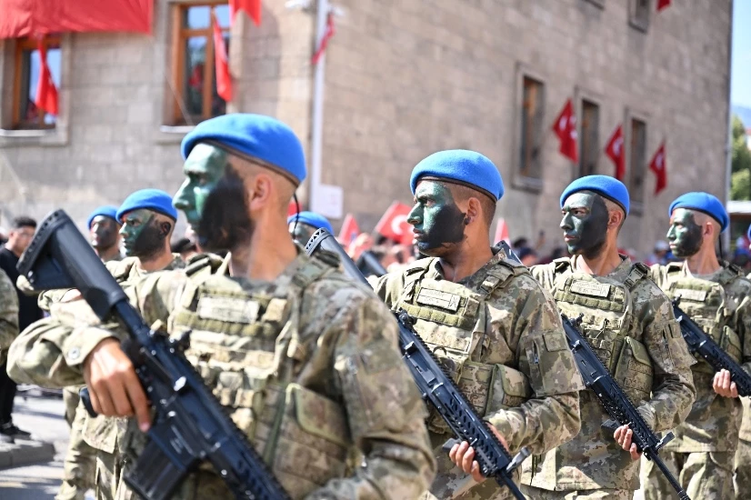 Törende, iç güvenlik harekatlarındaki üstün başarıları ile dikkatleri üzerine çeken Komandoların geçişi renkli görüntülere sahne oldu. Protokolün önünden geçen mavi bereliler törene katılan vatandaşlar tarafından dakikalarca alkışlandı. Komandoların marşlarla geçişi sırasında vatandaşlar da ellerinde Türk bayraklarıyla askerlere sevgi gösterilerinde bulundu. Mavi berelilerin marşlarla geçişi caddeyi inletti.