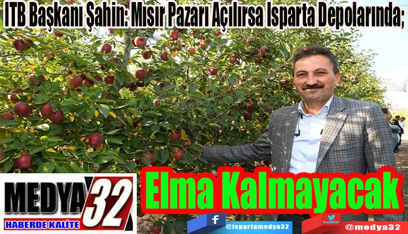 Isparta Ticaret Borsası (ITB) Yönetim Kurulu Başkanı Hüdai Şahin, 1-4 Şubat tarihleri arasında düzenlenecek olan Türkiye-Mısır İş ve Yatırım Forumu öncesi önemli açıklamalarda bulundu. Mısır’a elma ihracatındaki %40’lık verginin kaldırılması için 2,5 yıldır mücadele ettiklerini belirten Şahin, "Mısır kapısı açıldığında Isparta ekonomisi şaha kalkacak" dedi.