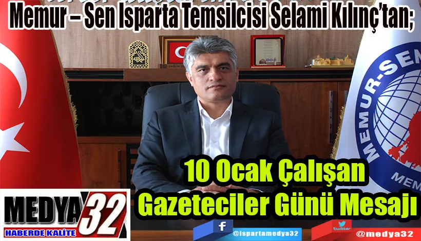 Memur – Sen Isparta İl Temsilcisi ve Eğitim Bir – Sen Isparta Şube Başkanı Selami Kılınç, 10 Ocak Çalışan Gazeteciler Günü dolayısıyla bir kutlama mesajı yayımladı.