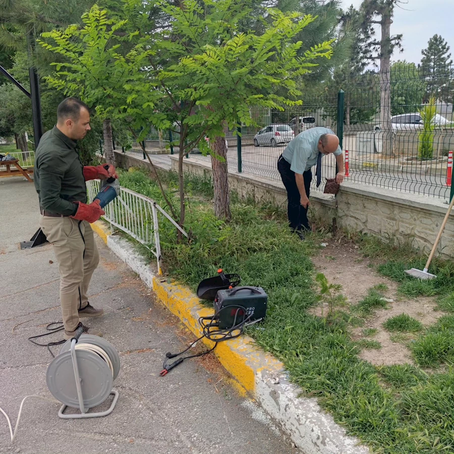Bilindiği gibi, geçtiğimiz günlerde İstanbul Eyüpsultan’da Iraklı bir öğrencinin Okul Müdürü İbrahim Oktugan’ı öldürmesi ile ilgili eğitimciye şiddete karşı sonuç alıcı, caydırıcı ve cezalandırıcı yasal düzenleme yapılması için ülke genelinde tüm öğretmenler bir günlük ‘İş Bırakma’ eylemi yaptı. Dolayısıyla, dün öğretmenler okula gitmedi ve öğretmenler okula gelmeyince öğrenciler de okula gitmediler ve okullarda bir günlük bir ‘boşluk’ oluştu. İşte bu boşluğu fırsat bilen Mehmet Köse İlkokulu ve Orta Okulu Müdürü Adnan Çelik, ilgili ustaları okula çağırıp okulun bir çok yerinde kırılmış – dökülmüş olan demir korkuluklarını yaptırdı.