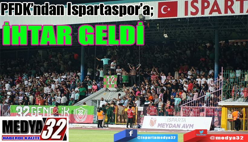 Türkiye Futbol Federasyonu (TFF) Profesyonel Futbol Disiplin Kurulu (PFDK), dün yaptığı toplantıda geçtiğimiz hafta Isparta’da oynanan Ispartaspor – Nazilli Belediyespor maçında taraftarlarının neden olduğu çirkin ve kötü tezahürat nedeniyle her iki kulübe de İHTAR cezası verdi.