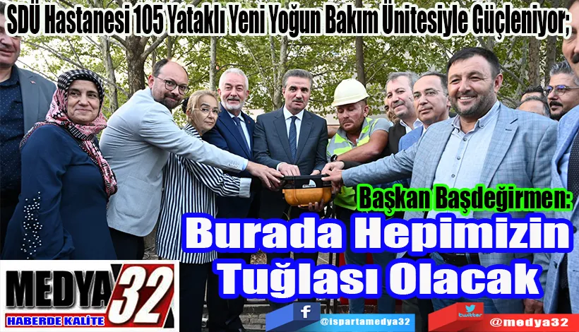 Burası memleketimize çok güzel hizmet verecek” şeklinde konuştu. Belediye Başkanı ve Isparta Kent Hizmetlerini Geliştirme Derneği Başkanı Şükrü Başdeğirmen, yoğun bakım talebinin fazla olduğunu, çevre illerden de yoğun bakıma hastaların geldiğini söyledi. Bu binanın Isparta’ya yakışacağını belirten Başkan Başdeğirmen, “Türkiye’ye örnek olacak yatırımın Isparta’dan çıkması bizim için çok değerli. Doktorlarımız, hastanelerimiz birçok ilden daha başarılı. Gazi Mustafa Kemal Atatürk ‘Beni Türk hekimlerine emanet ediniz” demiş. Türk hekimlerimize güvenimizden kaynaklı bu güzelliği, hekimlerimizin de çok rahat çalışabileceği alanları oluşturabilmemiz lazım. Medeni toplumun kaliteli yaşantısı o ildeki sağlık birimleriyle eş değerdir. Eğer siz kaliteli sağlığı vatandaşınıza sunamazsanız o memleketteki yaşam şartları istediğiniz seviyede değildir. Her şeyi devletten bekleriz ama bunun yanında bazı hizmetleri kendimiz yapabilmemiz gerekiyor. SDÜ Hastanesi 22 yıl önce yapıldı. Ama sanki 4 yıl önce yapılmış gibi kaliteli. Şehrimizin 22 yıl önceki nüfusuyla şimdiki aynı değil. O zaman bu güzelliğin fazlasını biz bir yerlere götürebilmemiz lazım. 3 bloktan oluşacak inşaatı en kısa zamanda tamamlayıp hastaneye teslim edeceğiz” dedi.