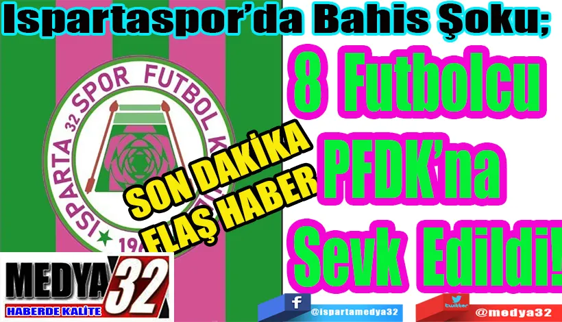 Türkiye Futbol Federasyonu (TFF), profesyonel liglere yönelik yürüttüğü Bahis Soruşturmasını sonuçlandırdı. Bahis oynadığı tespit edilen toplam 1024 futbolcu, Futbol Disiplin Talimatı'nın 57. maddesi uyarınca 10 Kasım 2025 tarihinden itibaren tedbirli olarak PFDK’ya sevk edildi. Bu futbolcular arasında Ispartaspor’da futbol oynayan 8 futbolu da bulunuyor.