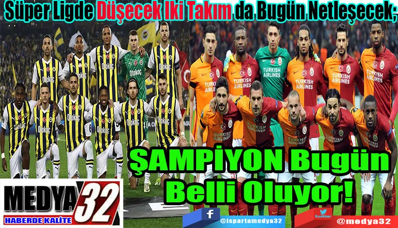 Süper Lig'in son haftasında şampiyon ve ligden düşecek takım bugün oynanacak müsabakalarla belli olacak. Galatasaray'a şampiyonluk için beraberlik yetecek. İstanbulspor ve Karagümrük'ün ardından 26 averaj farkı olan Pendikspor ile birlikte küme düşen 4. takım da belli olacak.