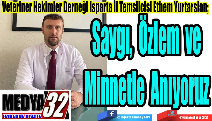Veteriner Hekimler Derneği Isparta İl Temsilcisi Ethem Yurtarslan, Türkiye Cumhuriyeti’nin Kurucusu Mustafa Kemal ATATÜRK’ün ölümünün 87. Yıldönümünde bir anma mesajı yayınladı.