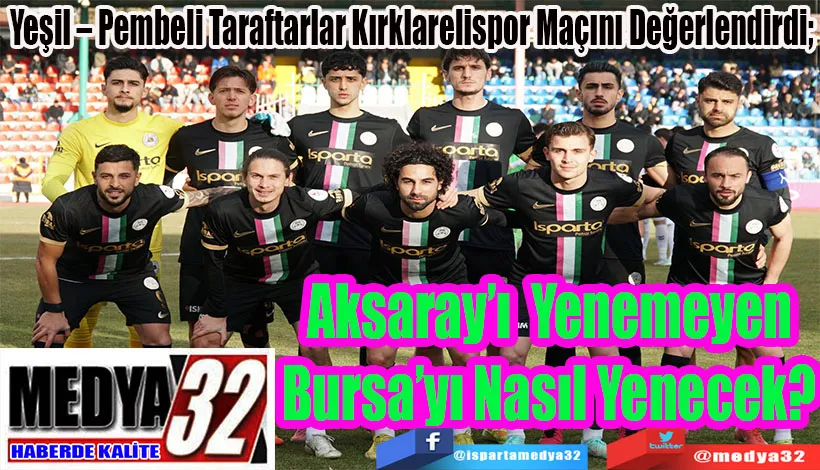 Ispartasporlu Taraftarlar, önceki gün Ispartaspor’un deplasmanda oynadığı ve sahadan 2 – 2’lik beraberlikle ayrıldığı 68 Aksarayspor maçını değerlendirerek; “Bursa maçı öncesi Aksarayspor maçının mutlaka kazanılması gerekiyordu. Takım çok vasat oynadı. Bu oyunla Aksarayspor’u yenemeyen takım Bursaspor’u nasıl yenecek?” Diye sordular.